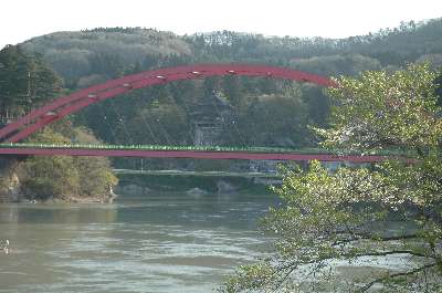 橋の向こう側に見える 福満虚空蔵尊圓蔵寺