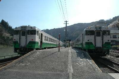 会津柳津駅 会津若松行と小出行きの列車が勢ぞろい