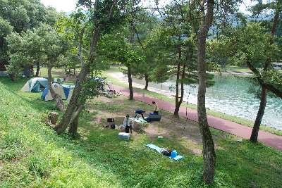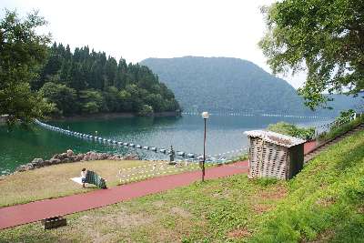 沼沢湖畔のキャンプ場 道路から下がった湖畔にある